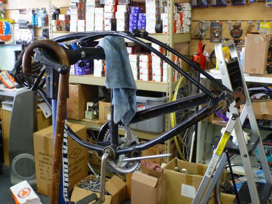 I found a sUpEr-KoOL Jack’d-ouT bike shop at 1157 Long Beach Blvd [near Anaheim]: The Long Beach Bike Connection. They’re over-stocked with lot’s of cool junk. They must have 100 used bikes on the floor and lots of them worth their weight in gold for city riding. Their entire inventory is used bicycles with about a dozen new single speed bikes. It’s a treasure trove of pre-owned machinery. Behind the counter, where the repair station is located, it’s crowded with parts and buzzing with tinkering. The owners are just plain bike shop entrepreneurs; no pro-shop arrogance, no fixie hipness posturing, just good ol’bike-shop attitude.